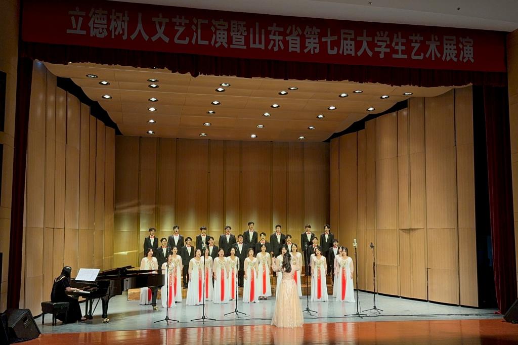 11月29日,在山东省教育厅主办的立德树人文艺汇演暨山东省第七届大学生艺术展演声乐专场活动中,学院艺术团悦之声合唱团报送的大合唱《运河的流水》《壮美延安》,从众多报送作品中脱颖而出,参加此次现场展演活动。