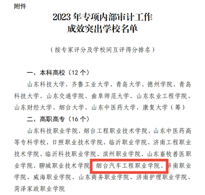 11月20日,山东省教育厅开展了2023年人才政策落实、招标采购事项专项内部审计成果展示活动。本次展示活动采取专家评审和学校间互评,对110所本科、高职学校专项审计组织流程、审计发现问题、整改情况以及学校有关部门参与情况、内审部门作用发挥情况等进行了综合评价。经专家评审和学校间互评,共评选出12所本科高校,包括我院在内的16所高职院校作为本年度专项审计工作成效突出学校,今后学院审计室将进一步提高内部审计工作水平,为学校的高质量发展保驾护航。