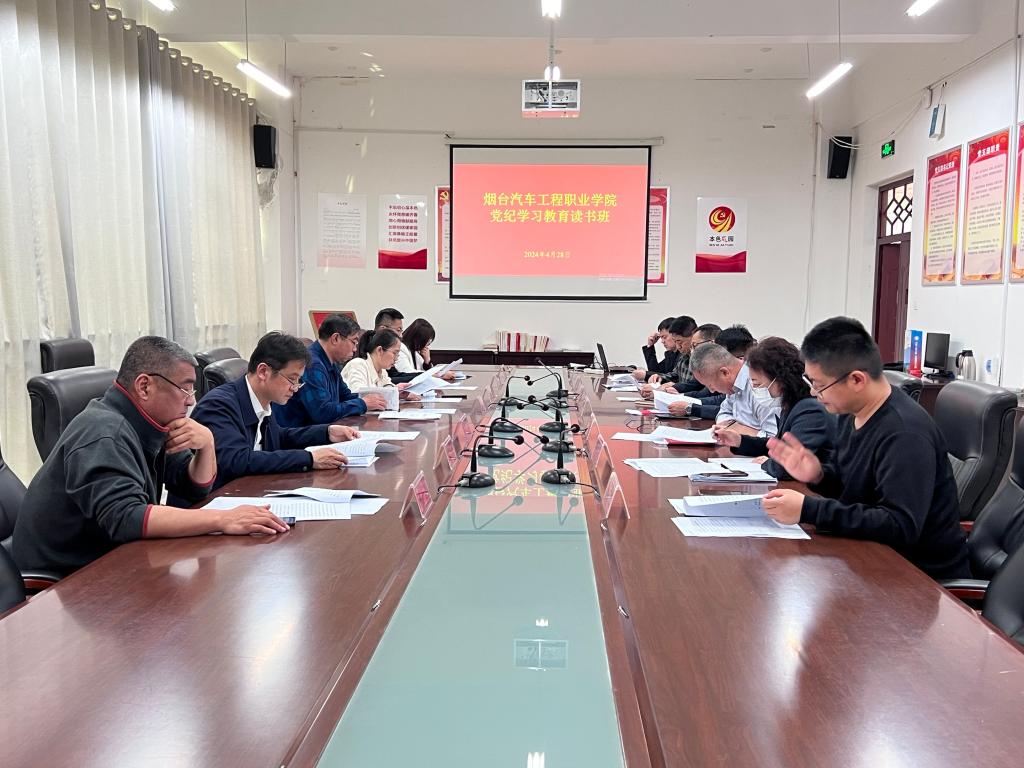 4月28日,烟台汽车工程职业学院在A1第一会议室举办党纪学习教育读书班,深入学习贯彻习近平总书记关于党的自我革命的重要思想,认真学习领会新修订的《中国共产党纪律处分条例》,引导党员干部学纪、知纪、明纪、守纪,进一步强化纪律意识、加强自我约束、提高免疫能力,增强政治定力、纪律定力、道德定力、抵腐定力,推动全院党纪学习教育走深走实。学院党委副书记曲耀春主持会议,副处级以上干部参加读书班。