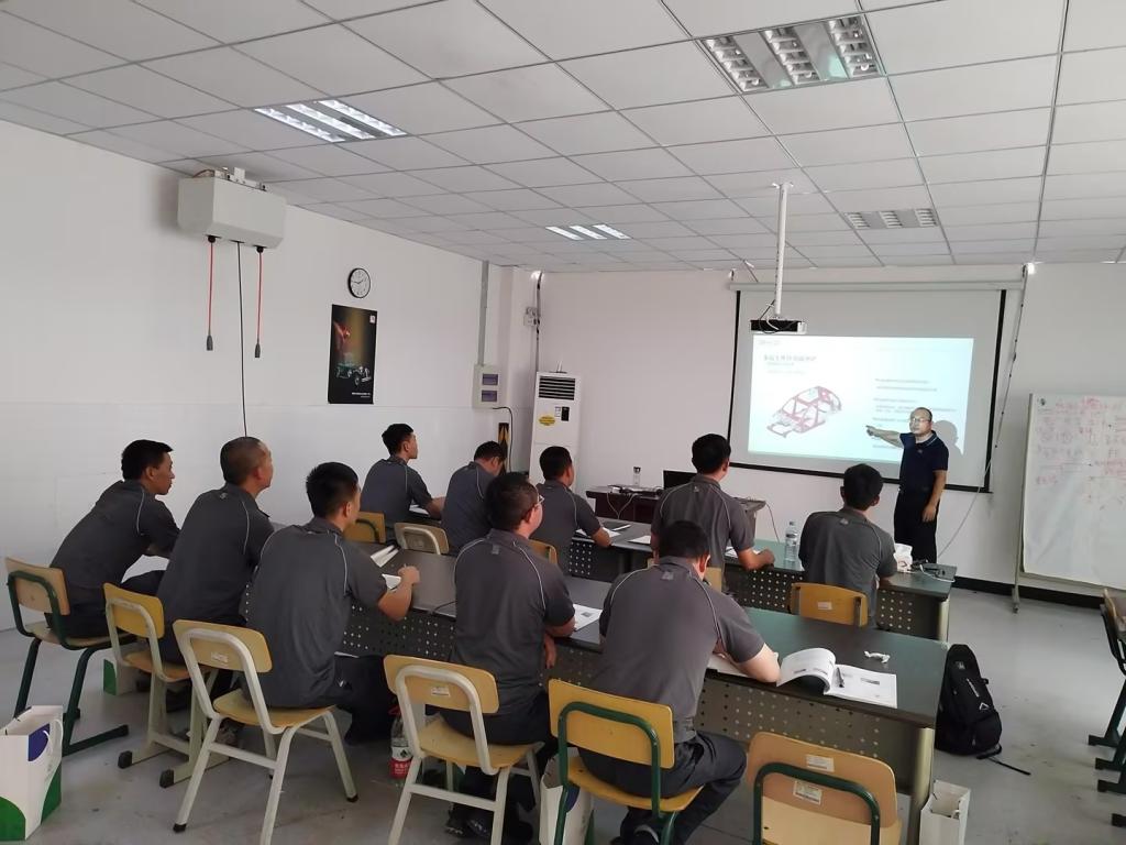 与此同时,小鹏翎风项目钣金中级培训在钣喷中心二楼小鹏校企合作教室拉开了序幕;而第40期比亚迪精诚钣喷项目钣金技师培训认证也在钣喷中心二楼比亚迪精诚钣金技师培训教室启动了新一轮的培训。小鹏翎风项目钣金中级培训由小鹏企业培训讲师宿昊宗和我校小鹏翎风项目讲师房前程联手执教,培训内容涵盖了铝合金的胶粘和铆接、车身减震器支座更换等前沿技术。而第40期比亚迪精诚钣喷项目钣金技师培训认证由我校比亚迪精诚钣喷项目教师宋元利主讲,培训内容包括比亚迪品牌文化、事故车系统平台查询、钢制车身轻小损伤维修和模拟车身钣金切割更换等内容。