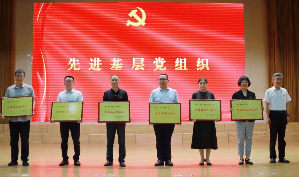 为表彰先进、激励斗志,学院党委决定授予孙圣雅等71名共产党员“优秀共产党员”称号,授予郭伟红等13名党务工作者“优秀党务工作者”称号,授予第一党总支等13个党组织“先进基层党组织”称号。会上,秦桂建为学院退休老党员颁发“光荣在党50年”纪念章,观看了“两优一先”典型事迹专题片《凝聚奋进力量 榜样引领前行》,领导班子成员为受表彰代表颁奖。