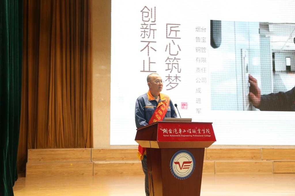 为大力弘扬劳模精神、劳动精神、工匠精神,充分发挥劳模工匠的引领示范作用,引导同学们热爱所学专业,增强职业认同感、荣誉感,形成崇尚先进、学习先进、争当先进的浓厚氛围,9月6日,烟台汽车工程职业学院在学院报告厅举行“劳模工匠进校园 匠心传承育未来”宣讲报告会。