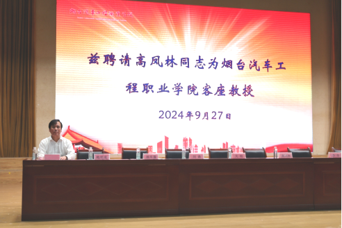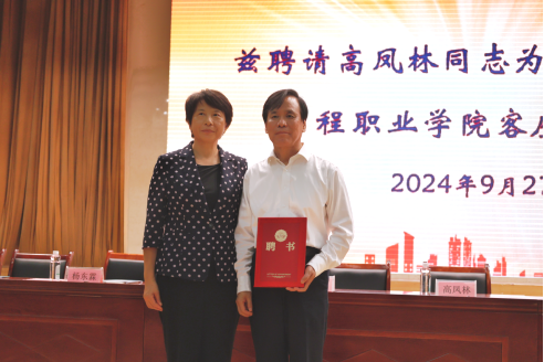 报告结束后,学院举行聘任仪式,聘请高凤林同志为烟台汽车工程职业学院客座教授,付双美副院长为其颁发聘书。
