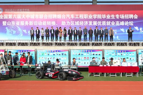10月20日上午,全国第六届大中城市联合招聘烟台汽车工程职业学院2018年毕业生专场招聘会在学院体育场如期举行,军体拳表演拉开开幕式帷幕,烟台汽车工程职业学院党委副书记、副院长于波主持开幕式,烟台市人力资源和社会保障局副局长于腾和学院院长李广先后致辞, 山东省人社厅高校毕业生就业处李兆俊处长等60多位嘉宾出席。
