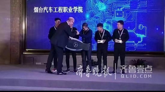 现场,戴姆勒大中华区有限公司人力资源及戴姆勒中国职业教育总监司徒·马丁先生亲手把车钥匙交给该院带队老师王宇,本次奖励的车型为奔驰C260。