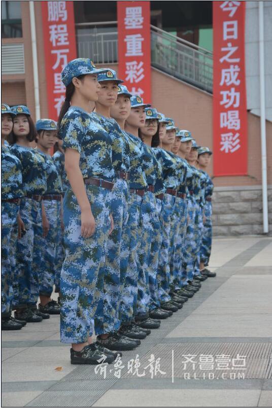 “稍息、立正,向右看……”13日,记者在烟台汽车工程职业学院校园里看到,4000多名新生正在军训。正在军训的新生们上身穿着海蓝色迷彩军训服。汽车与营销服务专业3班的新生周玉茹告诉记者说,他们的军训服是学校免费提供的。“虽然不是啥贵重东西,但浓浓的关怀之情尽现其中,新生稚嫩的脸上乐开了花。”现场辅导员李老师告诉记者。