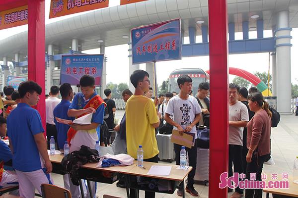 中国山东网烟台9月7日讯 (实习记者 孙晓梦) 9月7日,烟台汽车工程职业学院正式开学,迎接老生返校、新生入学。记者走进学校大门,彩旗飘扬、横幅高挂,热闹却又井然有序。