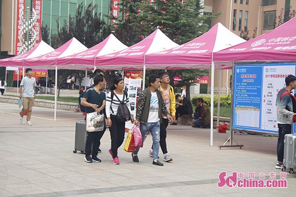 记者在校园里看到,来自全国各地的莘莘学子提着大包小包的行李陆续到达,在志愿者的引导带领下有序地进行入学报到,每一位新生入学报到流程大概需5分钟时间。据了解,为方便外地新生入学报到,学校在烟台长途汽车站、烟台火车站以及烟台港客运站都安排了接站车辆,直接将新生以及家长接送到学校,每个学院都在报到地点设立了家长休息区,为随行家长提供帮助。