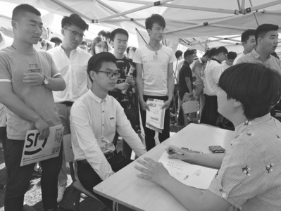 上午9点,人头攒动的招聘现场愈发热闹起来,记者在现场发现,不同于本科院校“海投”简历的现象,高职院校的应聘者对于简历的投放更趋“目的性”,其特殊的专业限制和专业要求决定了他们在应聘时把“专业对口”放在首位。就本次招聘会而言,各地知名汽车、电子类等331家企业走进驻烟高职烟台汽车工程职业学院,提供岗位12000余个,涉及自动化控制、汽车装配、工程师、仓库管理等883类岗位。就校方的统计来看,岗位数量较去年增加1倍。由此看来,国家对“工匠型”人才的需求和培养的力度没有减弱。