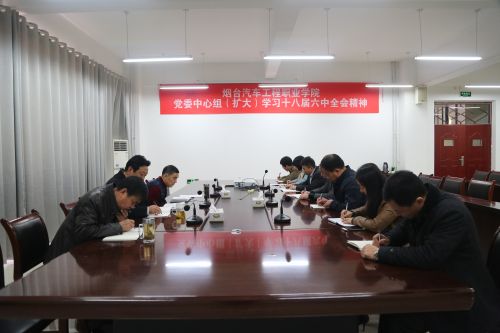 为深入学习贯彻党的十八届六中全会精神,推进学习活动在全院上下广泛开展,11月15日上午,烟台汽车工程职业学院党委中心组召开扩大会议,集体学习《中国共产党第十八届中央委员会第六次全体会议公报》及《准则》和《条例》。学院党委副书记、院长尹桂瓒结合《公报》及《准则》《条例》谈了学习体会。