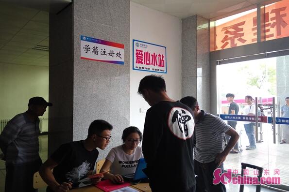 李春山是来自陕西西安的一位2016级新生,在他父亲的陪伴下,坐了三十八个小时才来到烟台,一下火车,人生地不熟的他多少有些茫然了。“这是我第一次出这么远的门,我爸也是第一次来烟台这边,环境什么都不熟悉,也不知道去学校应该怎么走。”