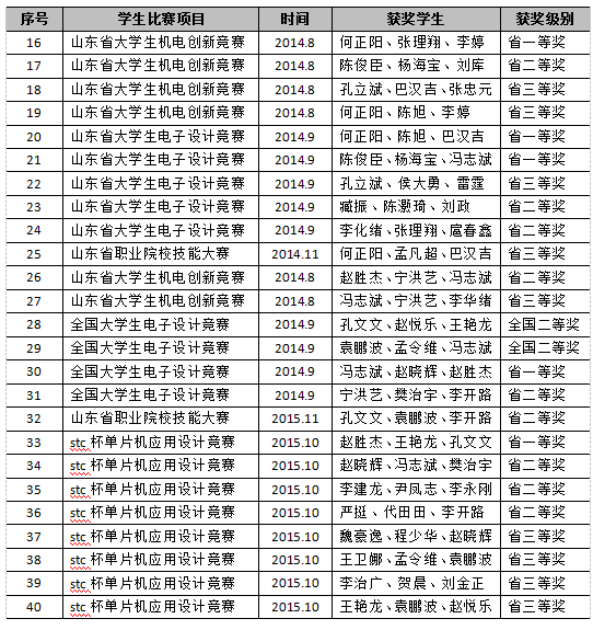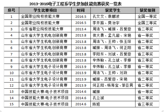 附:2013-2016电子工程系学生参加技能竞赛获奖一