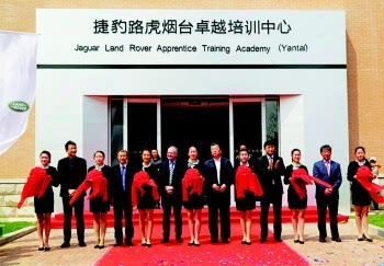 启动仪式后,与会嘉宾在新落成的捷豹路虎培训中心门前为捷豹路虎卓越培训项目烟台培训中心剪彩。剪彩仪式后,嘉宾们参观了即将启用的世界著名的汽车奢华品牌——捷豹路虎培训中心车间和教室。