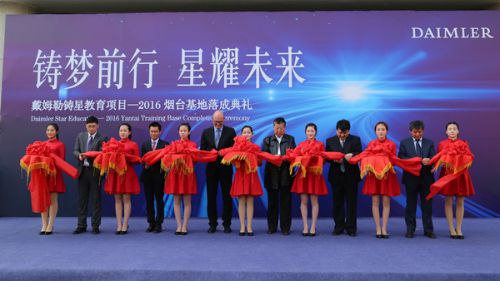 日前,戴姆勒铸星教育项目2016烟台基地落成典礼在烟台汽车工程职业学院报告厅隆重举行,戴姆勒大中华区有限投资有限公司人力资源支持及戴姆勒中国职业教育总监司徒马丁(Martin Spical)先生及烟台市、福山区相关领导及戴姆勒铸星教育项目合作院校的相关领导和教师、山东省内梅赛德斯—奔驰授权经销商代表、汽车职教集团成员单位代表、戴姆勒铸星班学员及学生代表参加了落成典礼,戴姆勒铸星班同时开班,戴姆勒铸星教育团队也在烟台启动了本年度的首场校园宣讲活动。