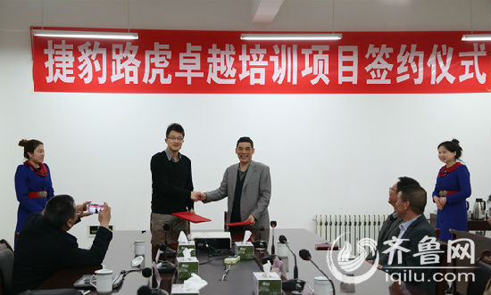 捷豹路虎汽车贸易(上海)有限公司经理俞政栋先生与学院尹桂瓒院长共同签署了合作协议