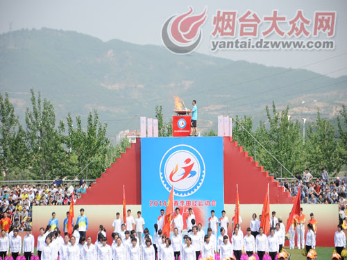 在运动员代表、裁判员代表宣誓完毕后,于波副书记宣布火炬点燃仪式开始。莱芜职业技术学院党委书记师承瑞点燃运动会火炬,该校学生会主席、经济管理系火炬手张路彬从师承瑞书记手中接过了点燃的火炬,并将火炬盆点燃。霎时,熊熊的火焰在火炬台盛放,运动会正式开幕。