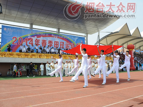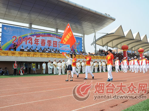 大众网烟台5月21日讯(通讯员 赵桂平 刘宗俊 潘家珍 记者 孙毅)为增强广大师生员工的身体素质,展示师生员工的向上风貌,21日下午,烟台汽车工程职业学院2014春季田径运动会在该校体育场隆重开幕。院长尹桂瓒,党委副书记、副院长于波及来自省高校工委、兄弟院校和11家合作企业的嘉宾出席。开幕式由该校党委副书记、副院长于波主持。