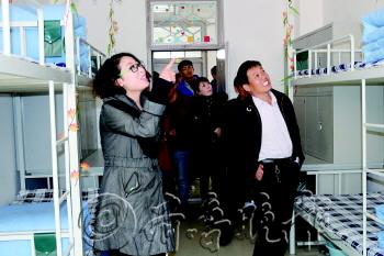 学生家长来到学生宿舍参观。 本报记者 李楠楠 摄