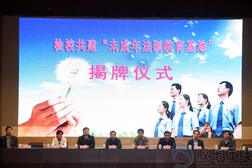 市人民检察院副检察长傅延威、区委副书记李晓明为校检共建“未成年法制教育基地”揭牌