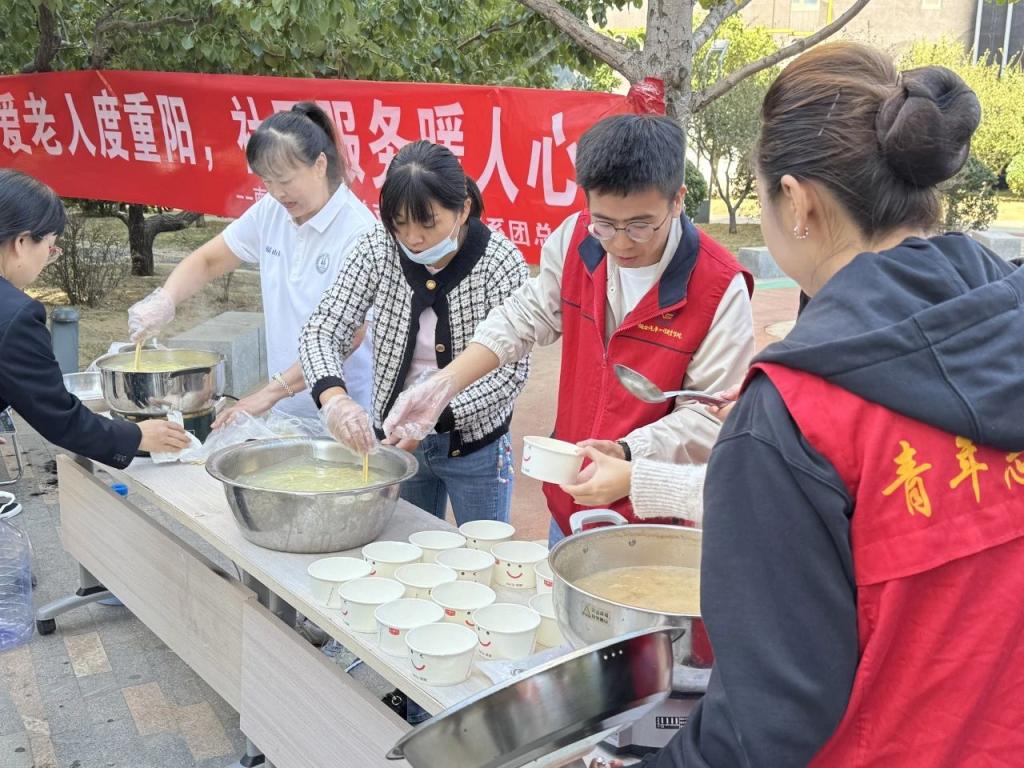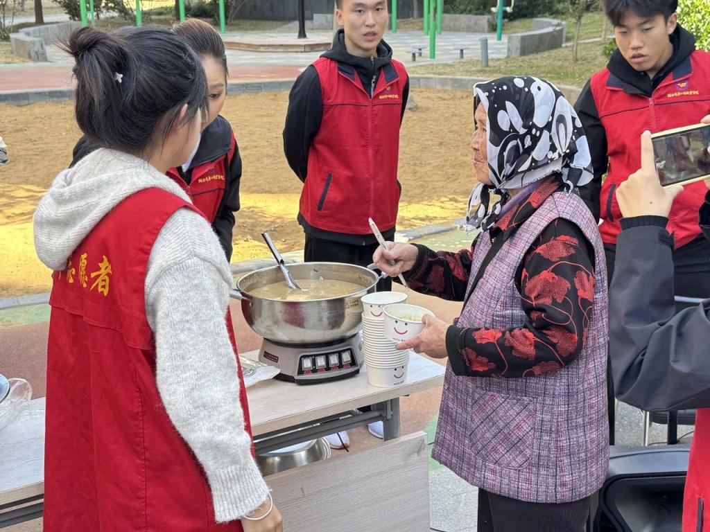 活动当天,志愿服务队师生一行12人早早地来到社区,为老人们带来了温暖和关怀。志愿者们开展了文艺演出、公益理发、煮长寿面等活动。志愿者歌手登台,深情演唱《我的祖国》和《当你老了》等歌曲,那悠扬的旋律,仿佛把老人们带回到了过去的岁月。他们有的轻轻跟着哼唱,有的则沉浸在回忆中,眼中泛起了泪光。与此同时,志愿者们在社区为老人公益理发,剪刀飞舞,老人笑容满面,温馨画面尽显敬老爱老之情。另一边一碗碗热气腾腾的长寿面传递着来自于志愿者们对老人深深的关爱与祝福。