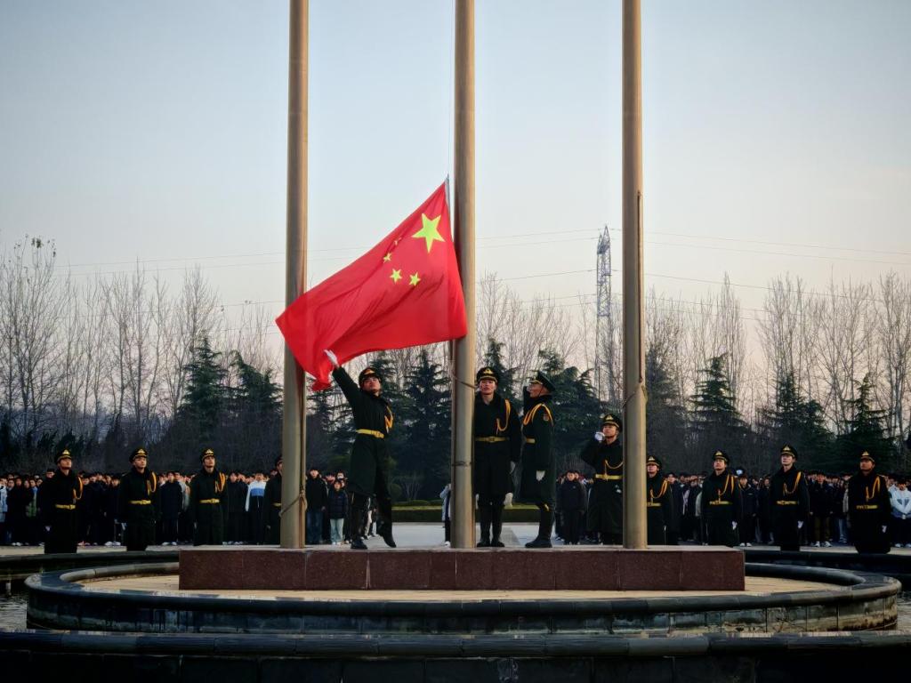 当激昂的国歌奏响,升旗手奋力一挥,五星红旗如同一道火焰划破长空,徐徐升起。在场师生的目光紧紧追随,眼神中满是崇敬与自豪。那飘扬的红旗,似在诉说着往昔岁月里先辈们的热血与奋斗,也承载着当代青年对祖国的热爱与担当。