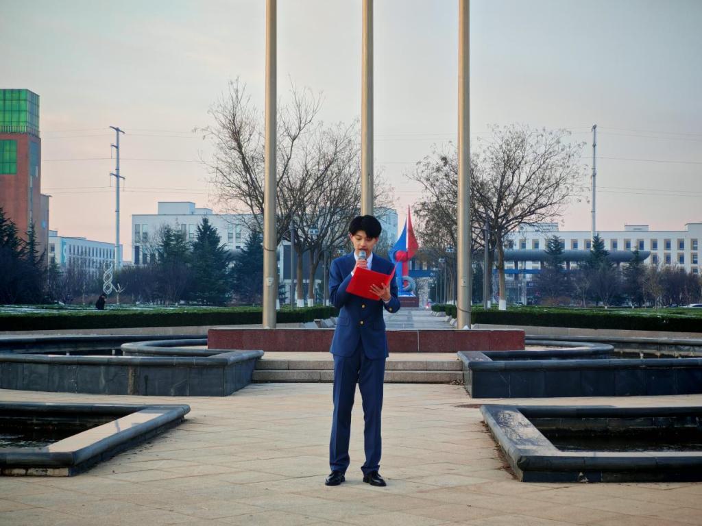 学生代表蒋恩泽在国旗下发言,回顾了“一二·九”运动中学生们为救亡图存而奔走呐喊的英勇事迹,号召交通系学子们铭记历史,将爱国精神融入到日常的学习与生活中。在专业学习中努力钻研,为祖国的现代化建设贡献力量,用实际行动续写爱国华章。