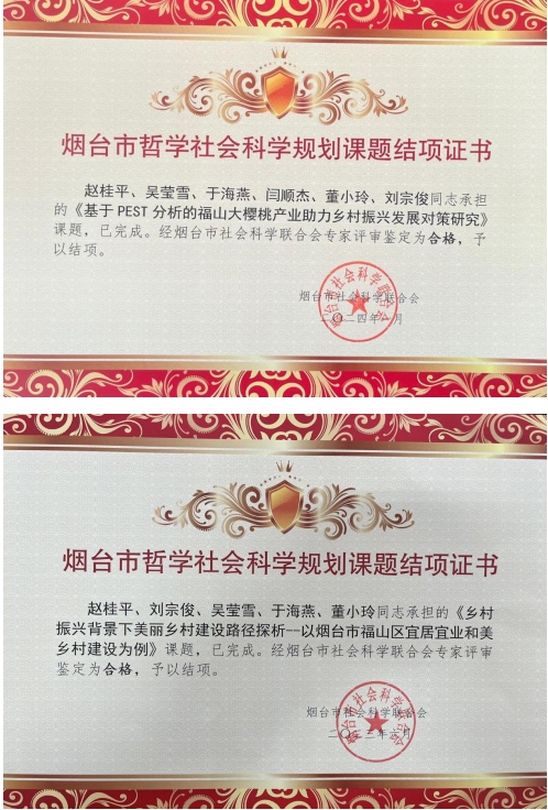 科研助力,驱动乡村振兴。聚焦本土乡村建设与产业升级,深入乡村开展专项调研,成功申报并结项烟台社科课题,为福山区乡村振兴战略输送强劲理论动力。