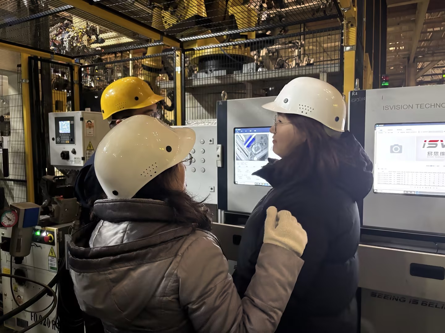 抵达企业后,教师们先后对总装车间与车身车间(即焊装车间)进行了细致参观,工作人员对车间情况进行了详细介绍,车身车间核心工作是把冲压件借助各类连接工艺组装成一台白车身,详细来讲,就是把冲压车间产出的板件拼组成完整的白车身,而所谓白车身,正是装焊完毕但还未进行涂装的车身总成。值得注意的是,车身车间在冲压、车身、涂装、总装这四大车间里,有着最高的自动化率,不过其设备的复杂程度也是首屈一指,基本上每一个零件在拼合、搬运以及焊接等环节,都能依靠机器人与计算机视觉实现自动化操作,彰显出极高的自动化生产水准。