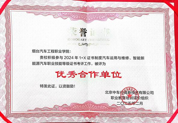 2019年以来,我院作为首批“1+X”制度试点院校和山东省省级办公室,在推进‘1+X’证书制度落地实施、开展全国师资培训、指导省内试点院校及组织证书考核等方面表现优异。学院多名教师被聘为汽车运用与维修机电维修标准化技术委员会专家,白秀秀、杜晓辉、刘新宇等同志多次被评为“优秀专家”和“优秀指导教师”,为学院赢得了广泛赞誉。
