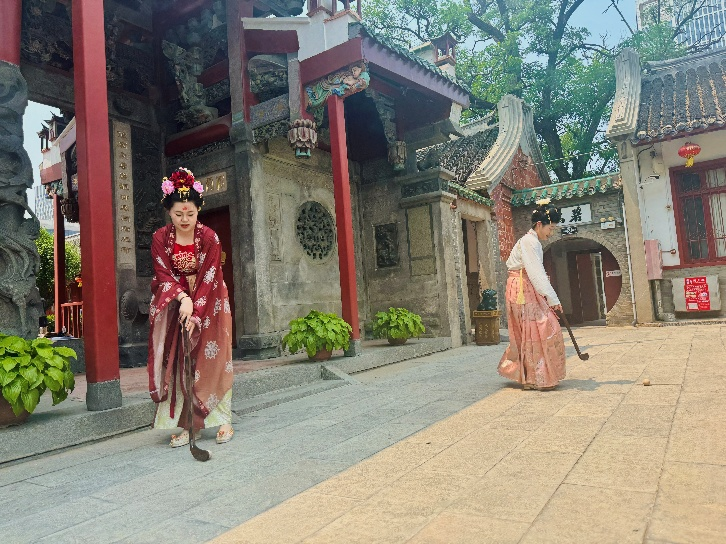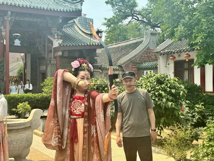 在蹴鞠、投壶等传统游戏区,学生志愿者耐心示范规则,带动参与者感受古代竞技的趣味;摄影打卡点旁,他们协助布置场景、指导构图,用镜头记录古韵之美。经济管理系24级市场营销专本贯通班周昊阳同学说:“志愿服务让我们从‘文化接受者’转变为‘文化传播者’, 能用自己的力量让更多人爱上传统文化,是特别有成就感的事。”