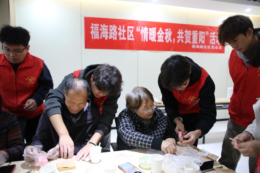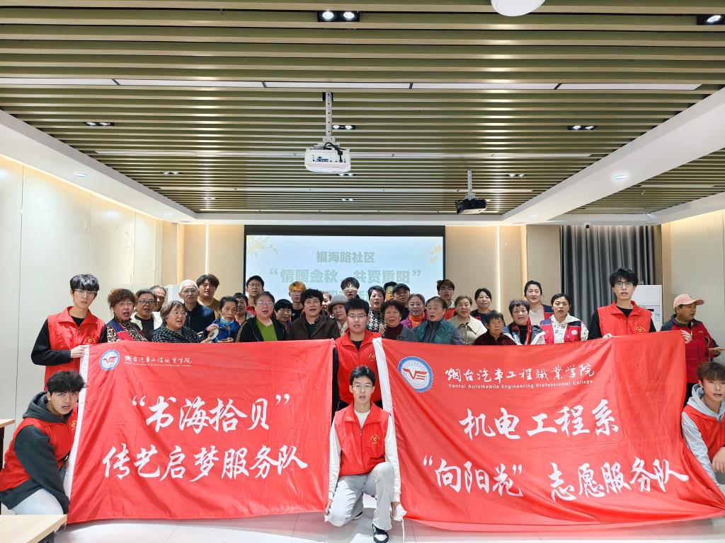 岁岁重阳,今又重阳。为弘扬中华民族尊老、敬老、爱老、助老的传统美德,积极响应“百万大学生进社区”社会实践号召,在重阳佳节来临之际,烟台汽车工程职业学院组织“书海拾贝”传艺启梦服务队与“向阳花”志愿服务队满怀热情地走进福海路社区,开展了以“品味非遗经典,传递青春温暖”为主题的志愿服务活动,本次活动巧妙地将节日敬老与传统非遗文化体验相结合,为社区老人带去了别具一格的文化盛宴与温情陪伴。