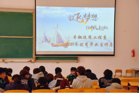 为了让同学们更加清晰自己的学习目标,合理地规划自己的学习之路,4月9日下午,车辆运用工程系在阶梯教室9举办了“放飞梦想,扬帆起航”学习经验分享会,今年考研成功的2016级汽检专业优秀毕业生郭承敏和杜若飞担任本次主讲人。