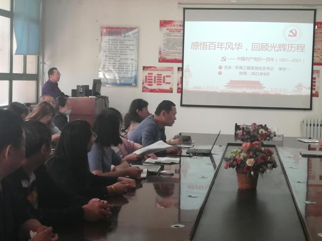 为深入学习贯彻习近平新时代中国特色社会主义思想,巩固拓展“不忘初心、牢记使命”主题教育成果,扎实开展党史学习教育,6月2日下午,机电工程系党总支在系会议室开展“我来讲党课”活动,党总支书记李世一担任主讲。