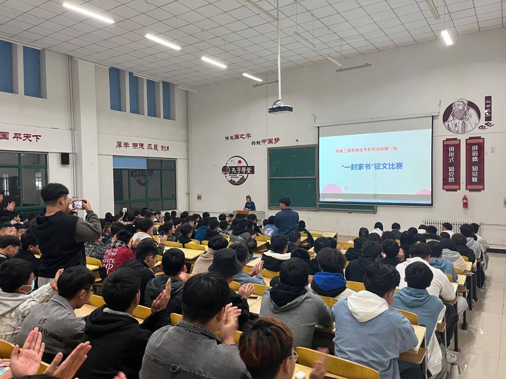 为进一步引导学生培育和践行社会主义核心价值观,推进“匠人匠心,精益求精”的专业特色文化建设,机电工程系定于10月18日至12月1日开展为期一个半月的“新生节”系列活动。近日,“新生节”系列活动第一站——“一封家书”活动圆满结束。