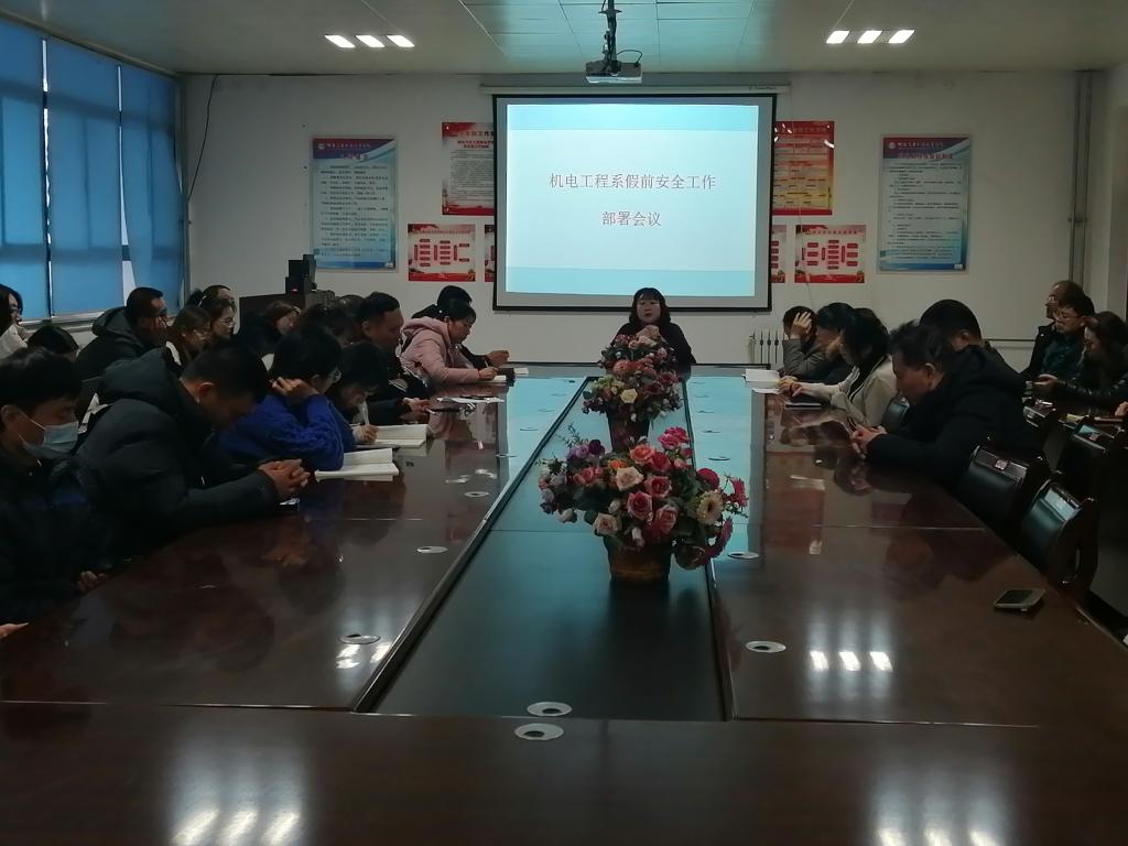 寒假在即,根据学院下发的关于《关于做好寒假前后安全防范工作的通知》文件要求,牢固树立“安全第一”和“学校安全无小事”的思想,12月24日下午,机电工程系在系会议室召开全体教师安全工作会议,会议由系主任谢丽君主持召开,系全体教师参加了本次会议。