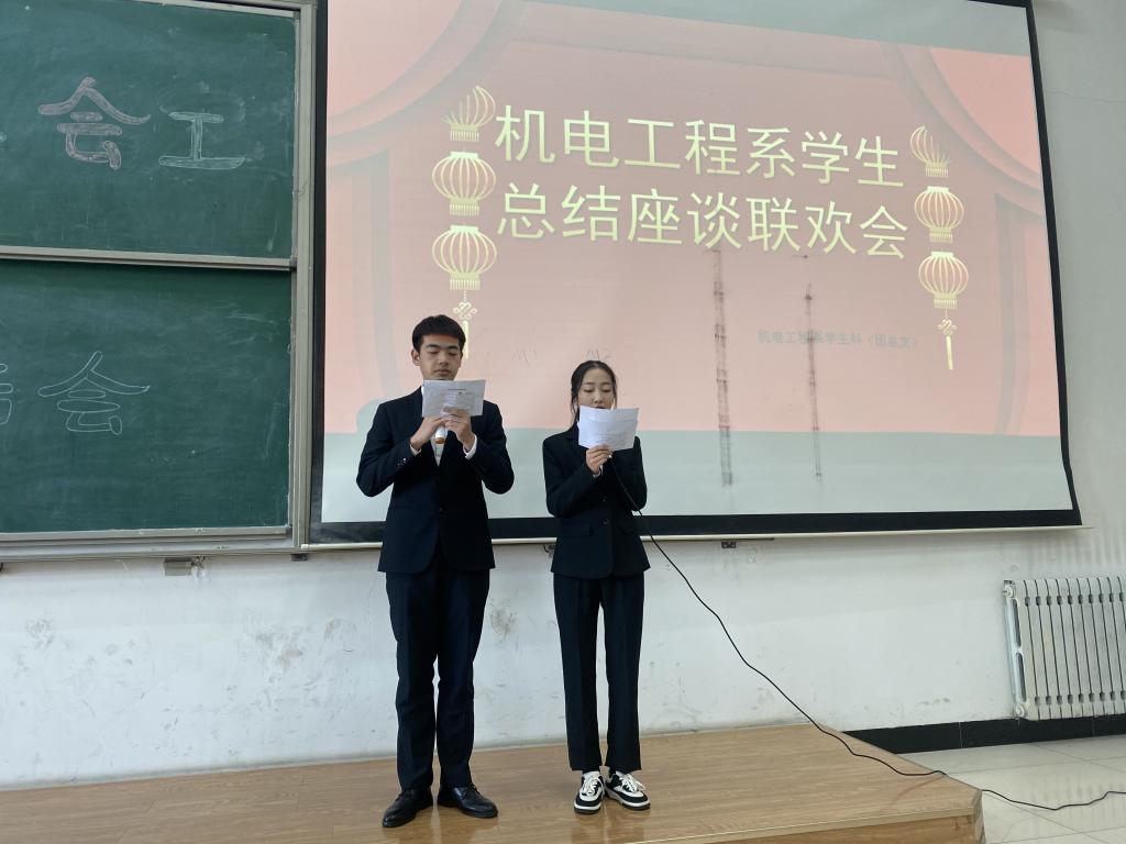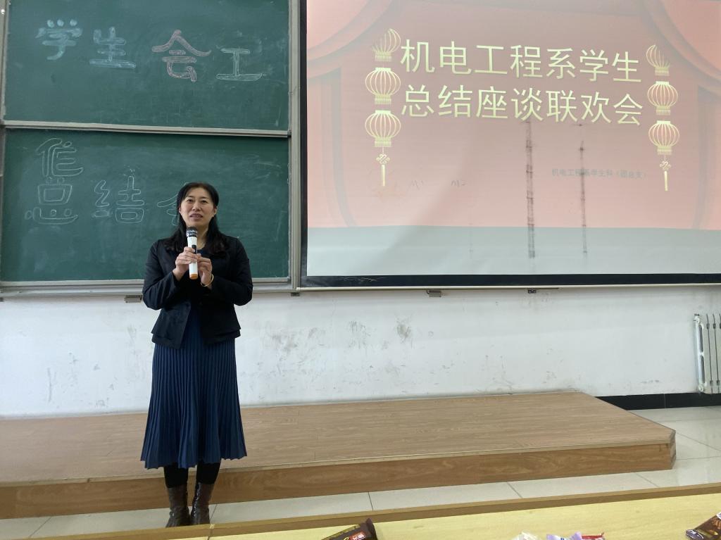 为进一步加强学生会队伍建设,增强学生会团队凝聚力,提升整体工作质量,机电工程系12月28日下午在阶梯教室8举办了以“携手共创,筑梦远航”为主题的学生工作总结座谈联欢会,系副主任蔡世伟、学生科科长邹仁平、学生科老师以及学生会全体成员参加了本次活动。