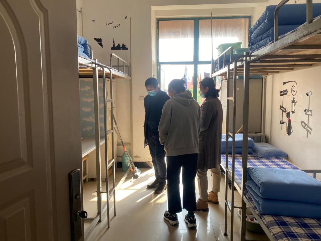 结合近来严峻的疫情形势,在走访过程中,蔡世伟主任不仅对学生返校后的适应情况进行了解,对宿舍的安全、卫生状况进行检查,同时也着重强调了在特殊时期一定要时刻注意个人防护,勤换口罩、勤洗手,除湿防霉、勤通风,叮嘱同学们严格遵守疫情防控要求,严禁使用大功率电器,杜绝安全隐患,继续养成并保持良好的生活习惯,坚持做好自我防护,如遇身体不适等问题须及时联系辅导员。
