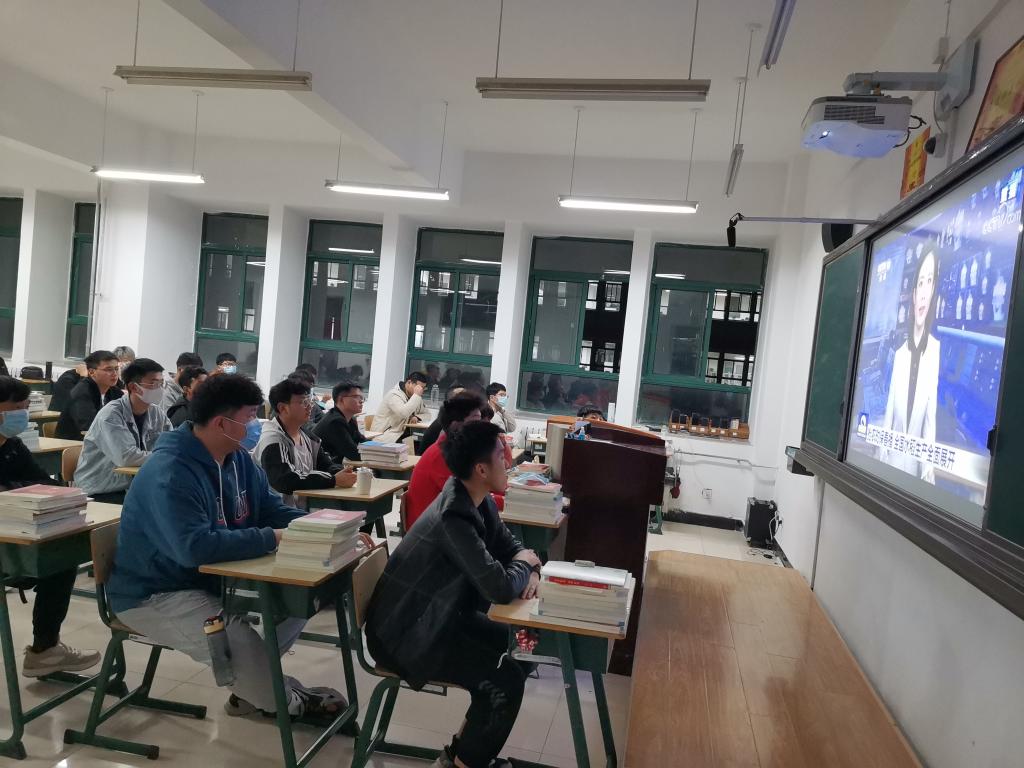 风声雨声读书声,声声入耳;家事国事天下事,事事关心。为了进一步加强学生的思想政治教育,增强学生的社会责任感,提高爱国热情,提高他们的思想政治素质,根据学院安排信息与控制工程系于4月18日晚自习期间组织在校生33个班级1048名学生观看中央电视台新闻联播,系部主任张玉芳、副主任董良新、教学科副科长刘道刚、学生科副科长王德生一行走访教室并与学生一起观看。