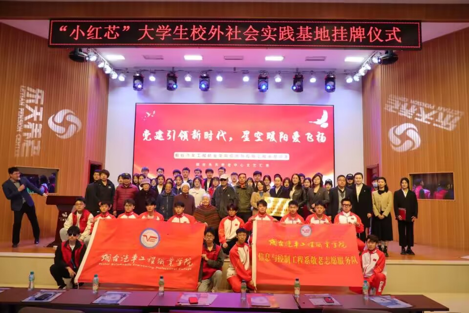 为发扬尊老爱老的传统美德,培养学生尊老敬老的优秀品质,烟台汽车工程职业学院信息与控制工程系副主任、教学管理党支部书记任利华、信息与控制工程系学生科副科长、学生管理党支部书记韩如坤、信息与控制工程系学生科副科长、团总支书记王德生、信息与控制工程系团总支副书记郭亚男、信息与控制工程系社团指导教师崔梦娜,携40名烟台汽车工程职业学院信息与控制工程系敬老志愿服务队志愿者于2023年4月13日赴烟台乐天养老中心举行挂牌仪式及文艺演出,烟台鲁东医院副院长朱仁娟、烟台乐天养老中心主任姜雅洁以及部分老人代表出席活动。