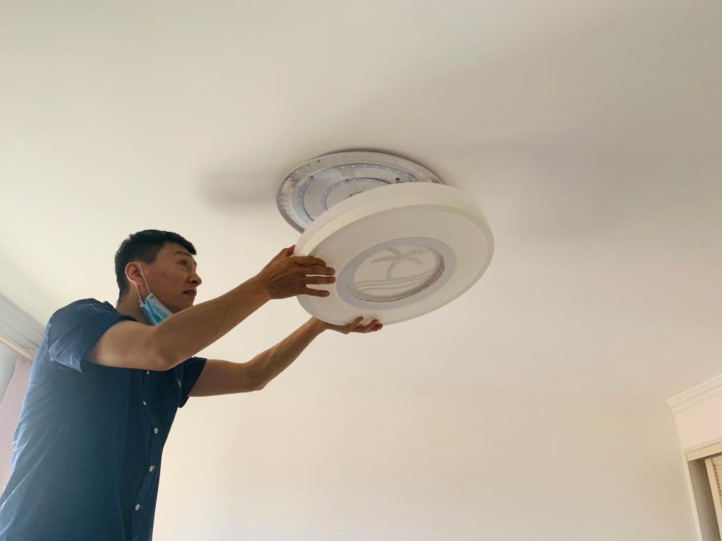 在服务过程中,芙蓉丽景社区居民吕京国联系服务队负责老师,反映家中吸顶灯坏了,能否上门维修。我系服务队孙立民、傅腾两位老师,带领三名学生志愿者到该居民家中实地查看后,外出购买了配件,给予了维修。