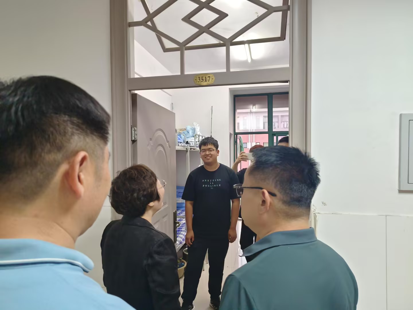见到学院领导、老师们来访宿舍,宿舍里的萌新们显得格外兴奋,纷纷向老师们问好并踊跃回答问题。他们表示将尽快调整状态,以饱满的热情投入新学期的军训以及学习生活,不辜负学院领导、老师及父母的殷切期望。