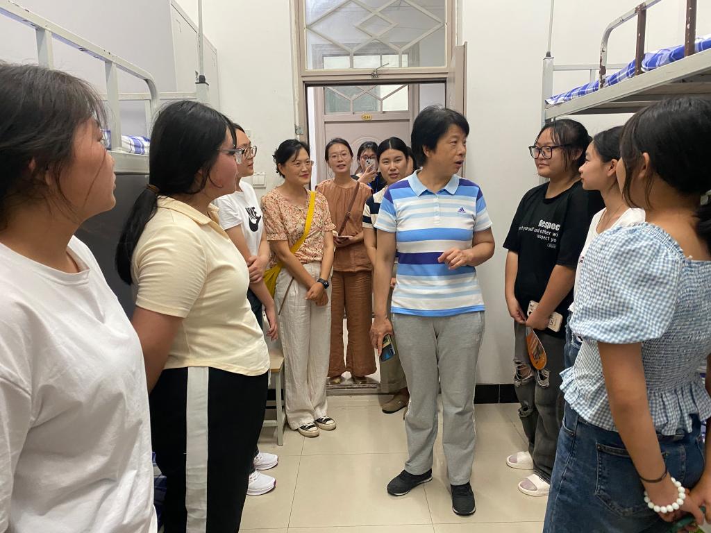 每到一个宿舍,付双美副院长一行都亲切地与新生们进行交谈,对他们的到来表示欢迎,并详细地询问了新生们的入校感受、吃住情况、是否有困难等,认真聆听新生入校感悟和学习生活诉求,针对大家报到以来关心的问题进行耐心细致的交流,重点强调了熟悉大学生活、宿舍安全、心理健康、诈骗防范等具体事项。付双美副院长鼓励大家从建立良好的舍风开始,及时调整个人状态,以饱满的精神投入到学习中,以昂扬向上的精神风貌和端正踏实的态度开启大学之旅。
