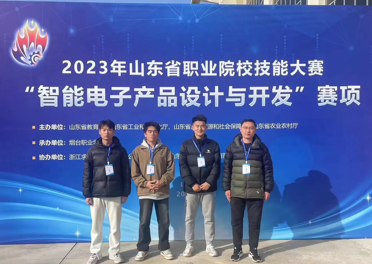 12月9日-10日,2023年山东省职业院校技能大赛高职组“智能电子产品设计与开发”赛项在烟台职业学院举办,电子工程系教师唐国锋和学生刘一铭、王志伟、张辉组成参赛队代表我院参赛,经过两天紧张激烈的比赛,从全省35支代表队中脱颖而出,获得全省第三名,荣获一等奖。