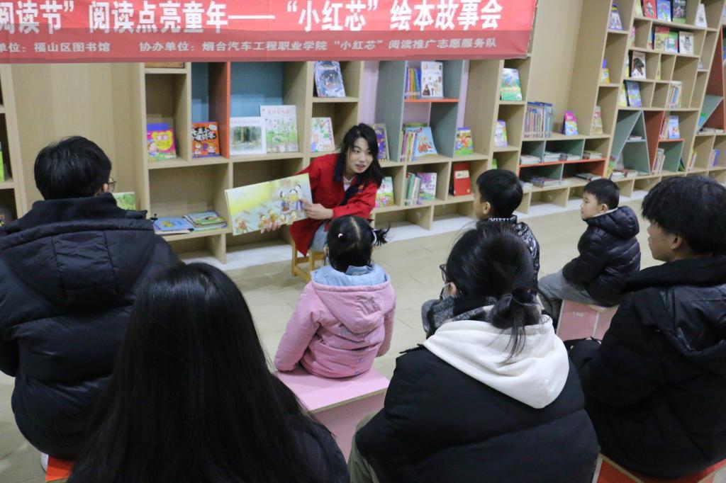 读书启迪人生,阅读点亮童年。12月23日,信控系联合福山区图书馆成功举办了全民阅读推广品牌项目“小红芯”绘本故事会第11期。来自烟台汽车工程职业学院“小红芯”阅读推广志愿服务队的姜宇和赵萌为小读者们带来了两个精彩的绘本故事。