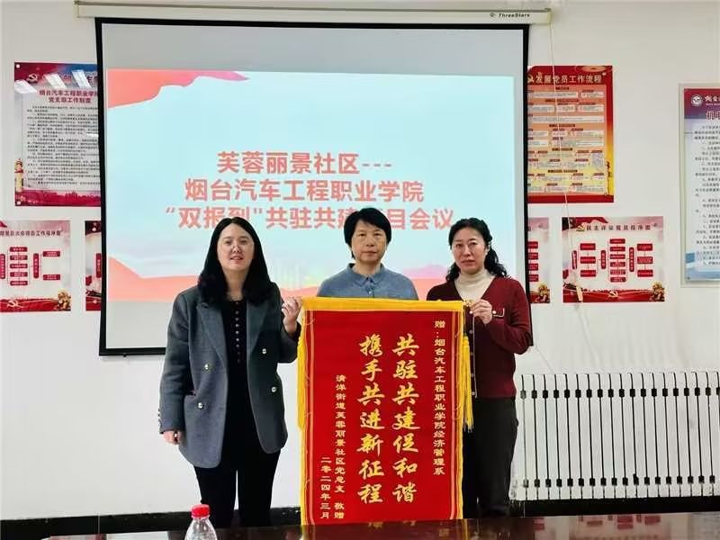 一面锦旗,一份温暖,一种激励。3月22日福山区芙蓉丽景社区赠予学院机电工程系、经济管理系、人文社科系三面分别印有“凝心聚力双报到,共驻共建促和谐”、“党建引领聚合力,共驻共建心连心”、“ 共驻共建促和谐,携手共进新征程”的锦旗,感谢学院志愿者的无私奉献、温暖人心的服务。