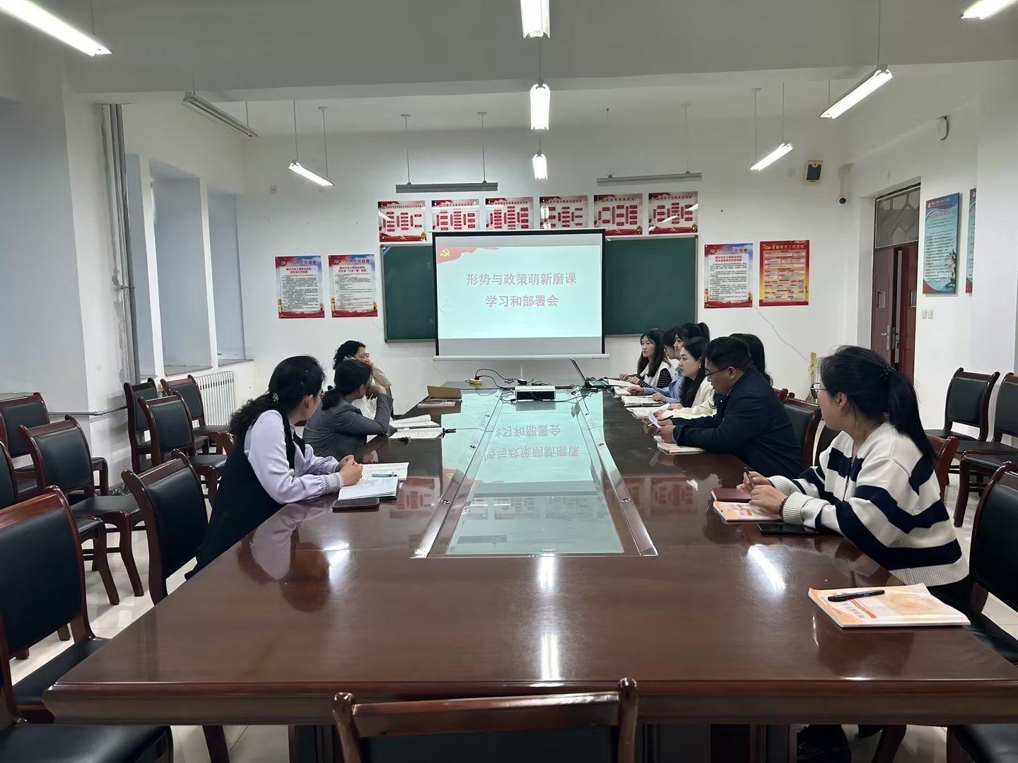 为进一步提高学院思政课教师的教学能力,夯实教学基本功,备赛2024年山东高校思政课“萌新磨课会”,马克思主义学院于4月11日下午开展“萌新磨课”学习研讨会,马克思主义学院干部和青年教师参加,会议由形势与政策教研室主任黄一飞主持。