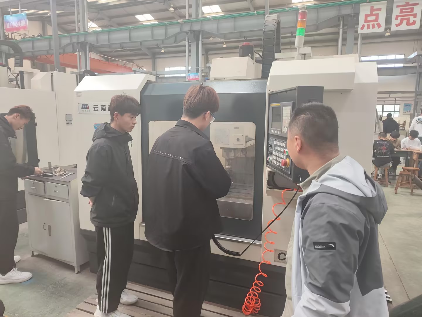 本次实践锻炼活动在机电工程系机械加工中心进行,全系近三年入职的青年专业教师参加了此次活动。机电工程系高度重视青年教师实践锻炼工作,由系教学科牵头制定详细的活动方案,遴选专业技术精湛的常喜军、谢立宁等实训教师作为指导教师,规范工作流程,严格督导考核,确保活动扎实有效开展。指导教师采用面对面示范、手把手教学的方式,围绕数控编程、工件夹持、刀具选择、零件加工等多个方面,对青年教师进行了详细讲解和操作示范,传授了他们许多多年积累总结的加工技巧和经验。期间,青年教师们勤学善思,严守实训车间的纪律和规章制度,虚心向指导老师学习取经,详细了解工作原理、操作规范、技术需求,认真学习所教专业在生产实践中应用的新技术、新工艺、新标准等,优化知识结构,提高实践技能。