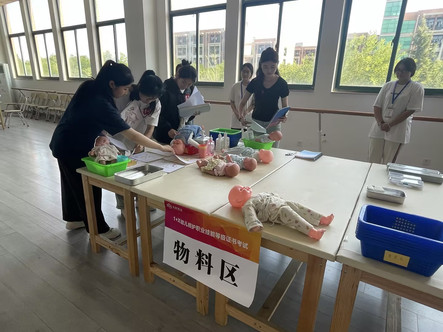 考核内容严格按照国家职业技能标准,结合幼儿照护行业的实际需求,分为理论考试和实操考试两部分,理论考试主要考察学生对幼儿照护专业知识的理解和掌握程度;实操考试则要求学生独立完成婴幼儿的生活照料、日常保健护理以及健康环境创设等任务,全面检验学生的实际操作能力和职业素养。经过严格的考核和评判,最终所有参加考试的学生均顺利通过了本次“1+X”幼儿照护职业技能等级证书考核。