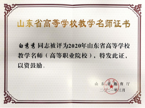白秀秀,烟台汽车工程职业学院教授。山东省高等学校教学名师,全国样板党支部书记,山东省女职工建工立业标兵岗负责人,山东省高等职业教育首批高水平专业群负责人,全国机械行业职业教育领军教学团队带头人,山东省职业教育名师工作室带头人,全国职业教育国家学分银行专家,山东省汽车工程学会专家委员,中华职教社烟台分社会员,烟台市职业教育先进个人,烟台市教育督导员。