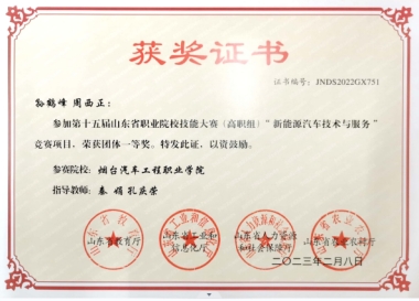 图9学生参加第十五届山东省职业院校技能大赛获得一等奖